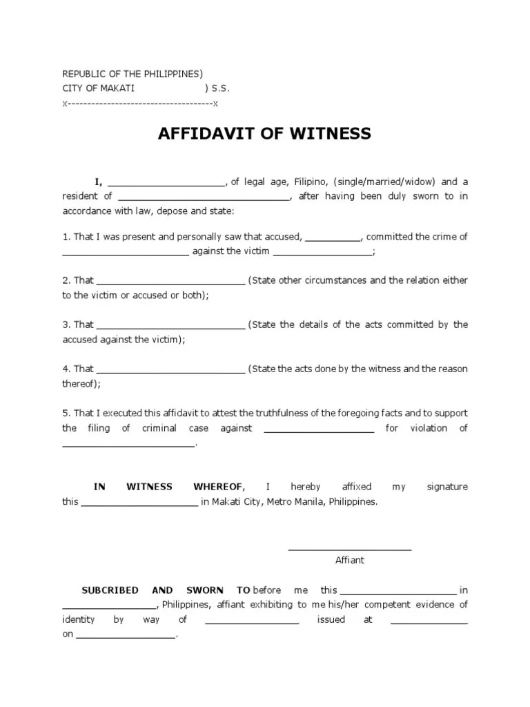 Sample Sworn Affidavit Of A Witness Philippines Legal vrogue.co