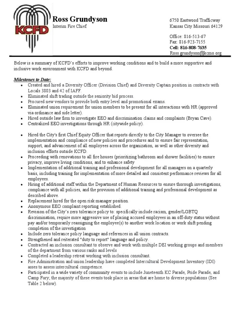 Kansas City Fire Department Memo PDF Leadership Mentorship