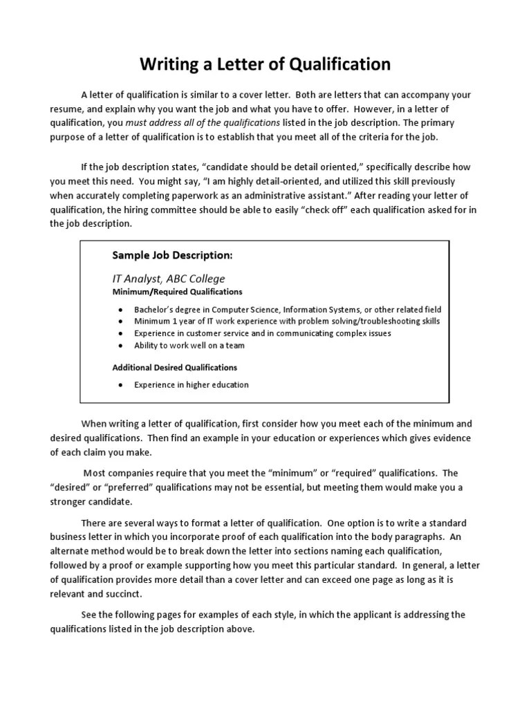 By crafting a compelling letter of qualification, you can effectively highlight why you’re the perfect fit for the job and increase your chances of landing an interview. However, in a letter of qualification, you must address all of the qualifications listed in.