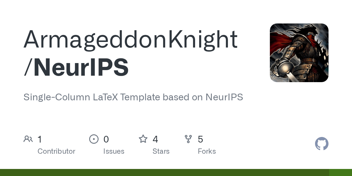 GitHub ArmageddonKnight/NeurIPS SingleColumn LaTeX Template based