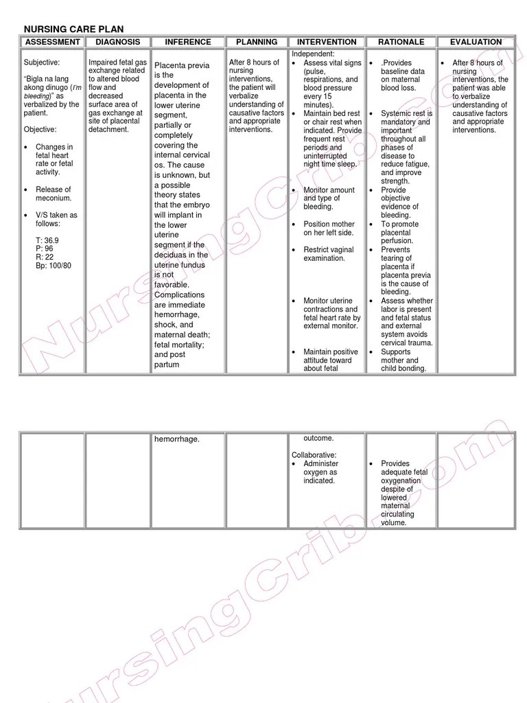 • list the maternal and fetal complications of placental previa and abruption placenta • describe the initial evaluation and management plan for. View systemdisorder_placenta previa.pdf from nursing 106 at los angeles city college. Find out the risk factors, types, signs, symptoms, diagnostic tests, medical and surgical interventions, and nursing care plans. View system_disorder_template(1).pdf from nurs 424 at university of south.