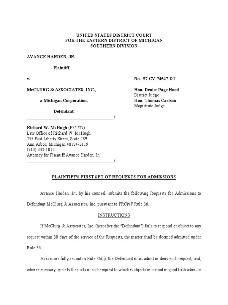 REQUEST FOR ADMISSIONS FREE TEMPLATE in word or PDF Doc Template