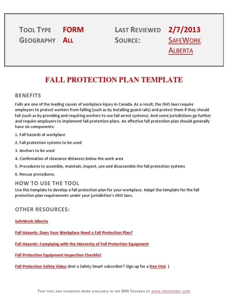 Sample Fall Protection Plan Template